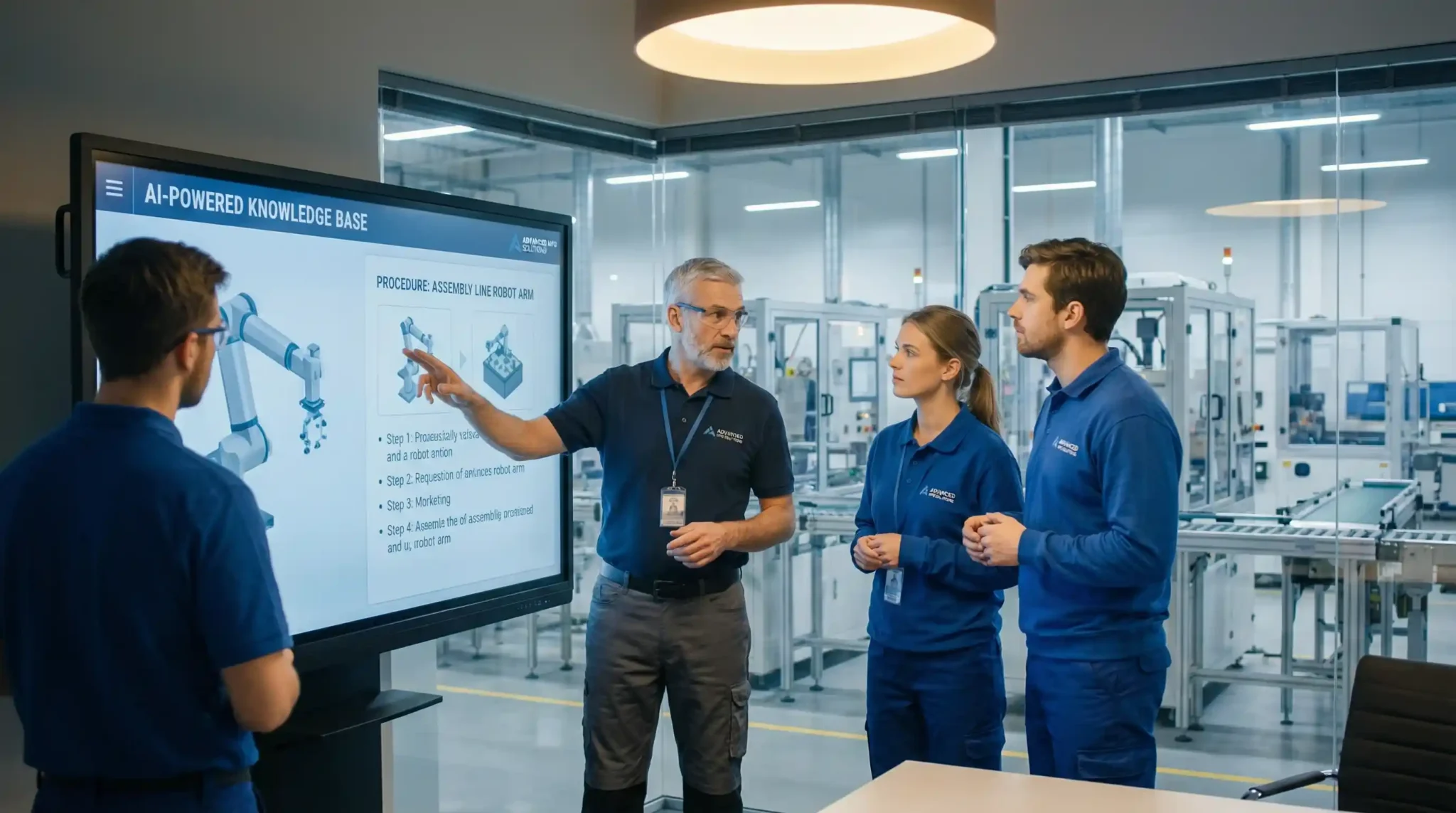 A $25M industrial equipment manufacturer used an ai copilot manufacturing knowledge platform to capture expertise from 5 retiring master machinists. The system documented 2,400 unique procedures and 850 troubleshooting scenarios. New hire onboarding time decreased from 14 months to 8 months. Quality consistency across shifts improved 25% as all operators gained access to best-practice guidance.