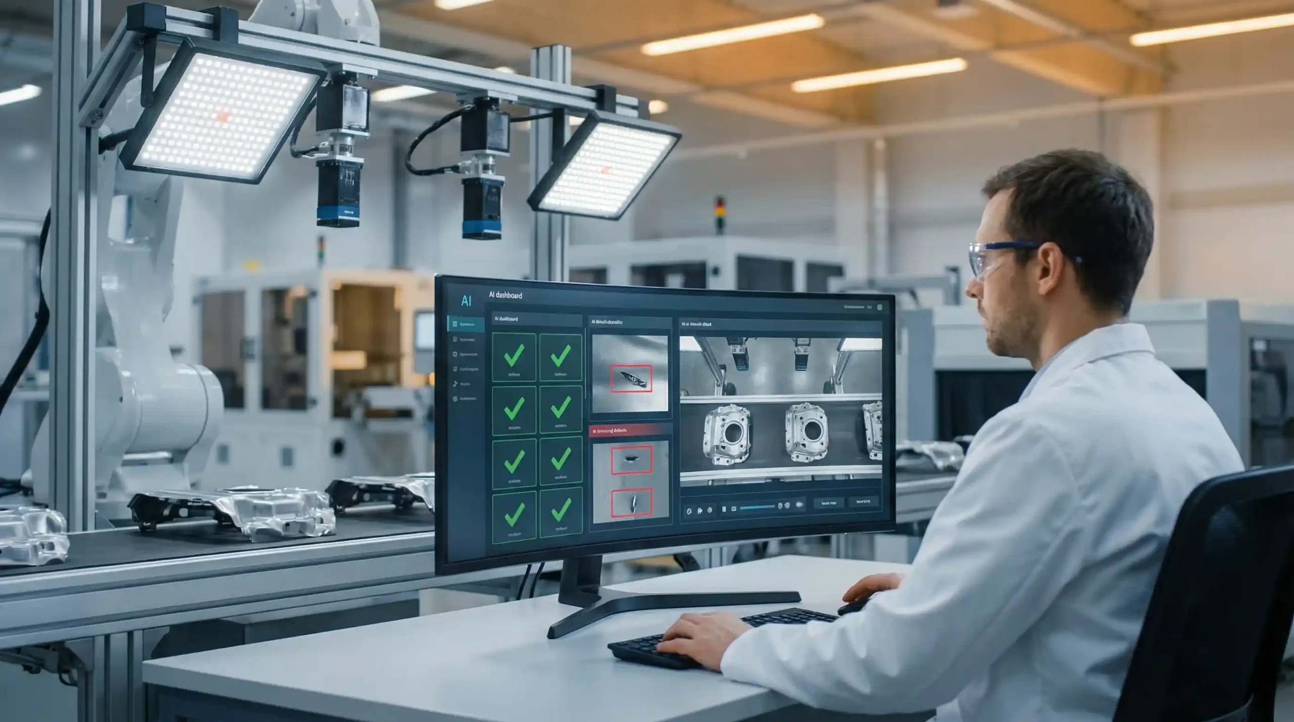 A $35M automotive parts supplier deployed an ai copilot manufacturing quality system on its stamping and welding lines. First-pass yield improved from 91% to 97.8%. Scrap costs dropped 42%. The system prevented an estimated 12,000 defective parts per month from reaching downstream processes. Annual quality cost savings exceeded $450,000.